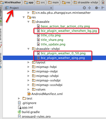 1.将本次实验所需的资源文件放置到相应的资源目录中
