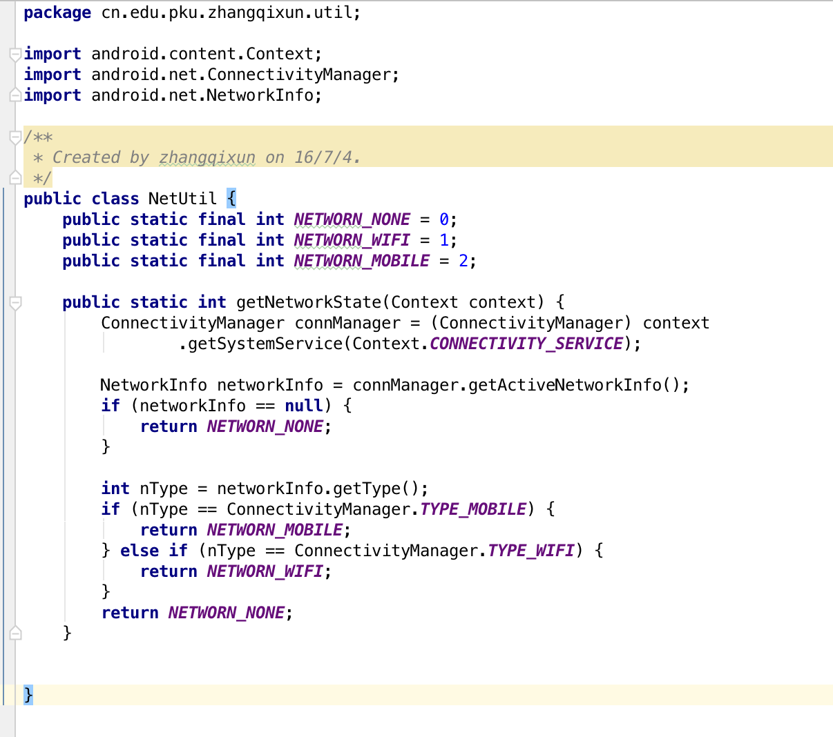 if (NetUtil.getNetworkState(this) != NetUtil.NETWORN_NONE) {