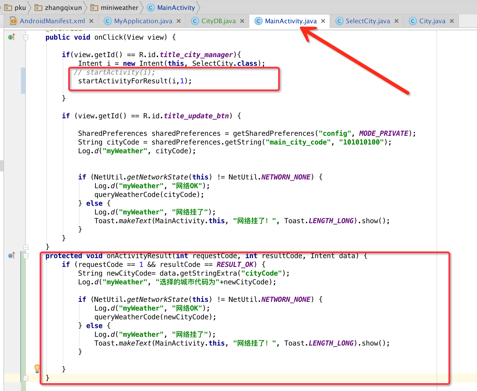 Log.d("myWeather", "选择的城市代码为"+newCityCode);